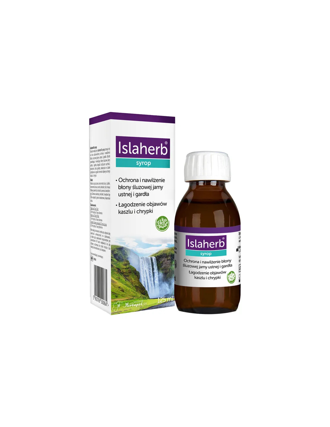 Islaherb syrop, to wyrób medyczny w formie syropu dla dorosłych, młodzieży i dzieci powyżej 1 roku życia. Pomaga chronić jamę ustną i gardło oraz łagodzi objawy kaszlu suchego i chrypki. Ponadto nawilża podrażnioną i wysuszoną śluzówkę, zmniejsza ból oraz pieczenie podczas przełykania. W składzie syropu znajdziemy ekstrakt z porostu islandzkiego, lipy i malwy posiadające obfite ilości substancji śluzowych oraz hialuronian sodu intensywnie nawilżający.